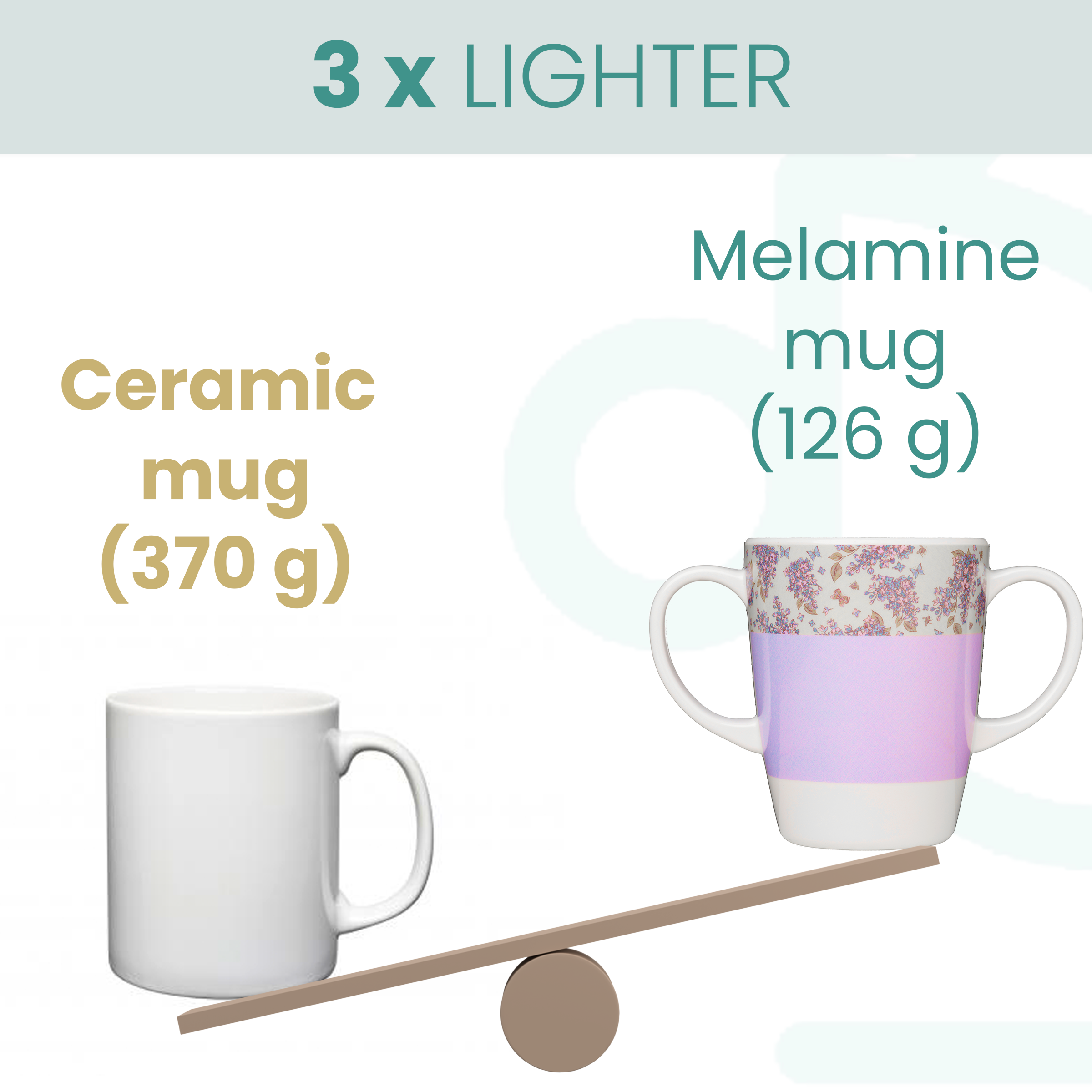 Our current mugs and trays are produced in China from high-quality melamine. Our manufacturer holds current ISO9001 (Quality Management System) & ISO14001 (Environmental Management System) certificates and all products are made to UK & EU regulations.